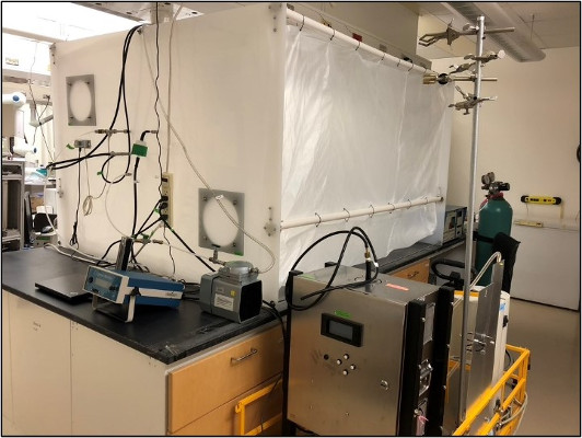 Constructed chambers in the labs of Drs. Barbara Turpin and Joe Brown at UNC-CH provide the simplest testbed for PreMiEr researchers. The conditions within these systems can be tightly controlled and instruments can directly measure a number of variables inside the chamber. This test bed is optimal for exploring the viability and proliferation of microbes on surfaces or delivered via certain methods (e.g., aerosols), but is poorly representative of a more complex “real-world” built environment.